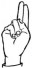 На ћирилици написано ПЕРИША ГОЧАНИН састоји се из 13 слова [?]. Исписано ћириличном једноручном азбуком за глувонеме: